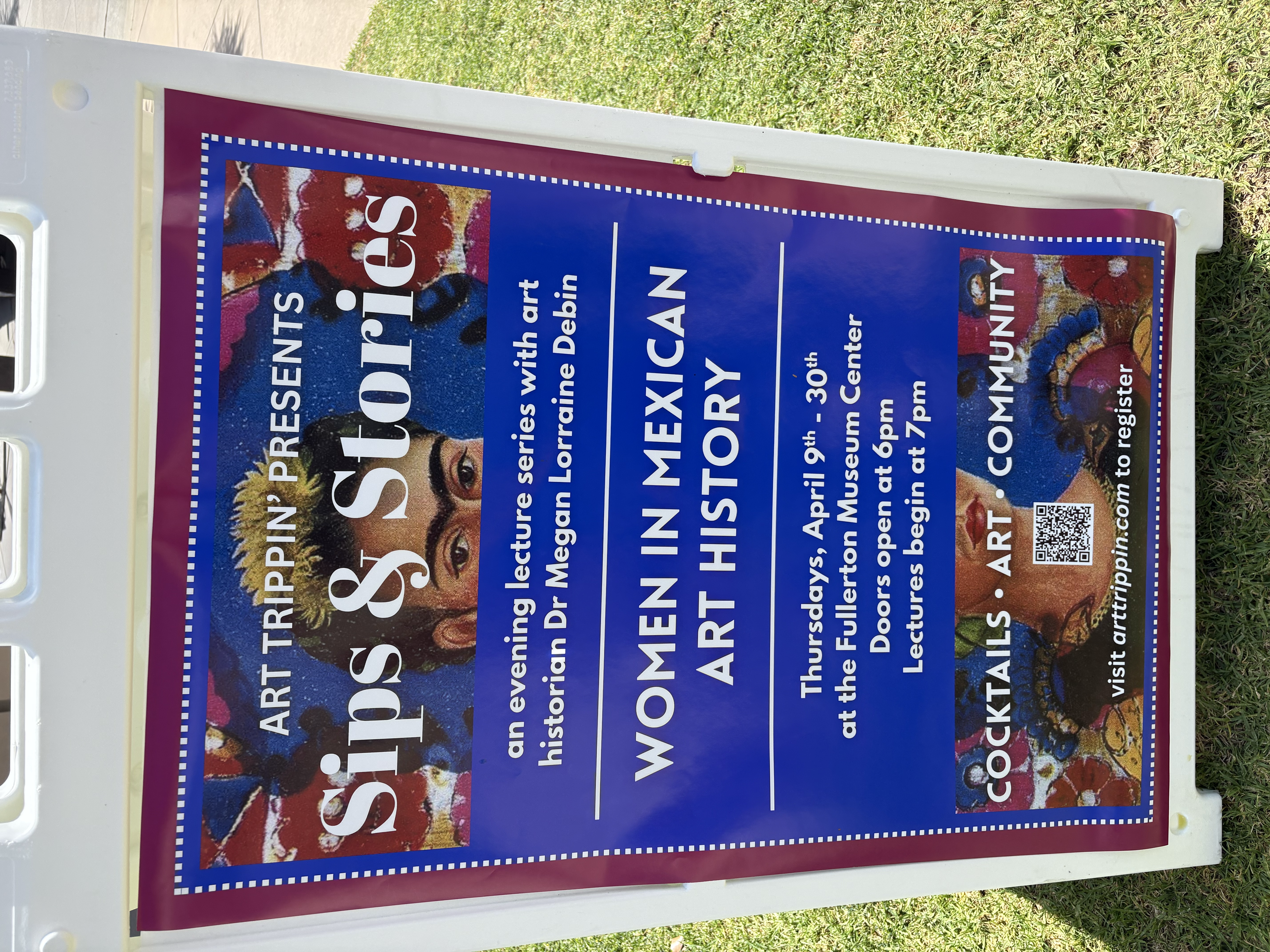 Art Trippin' presents Sips & Stories, an evening lecture series on Women in Mexican Art History with art historian Dr. Megan Lorraine Debin. Held Thursdays April 9 through April 30 at the Fullerton Museum Center, with doors opening at 6 PM and lectures at 7 PM. A cocktails, art, and community experience β register at arttrippin.com.